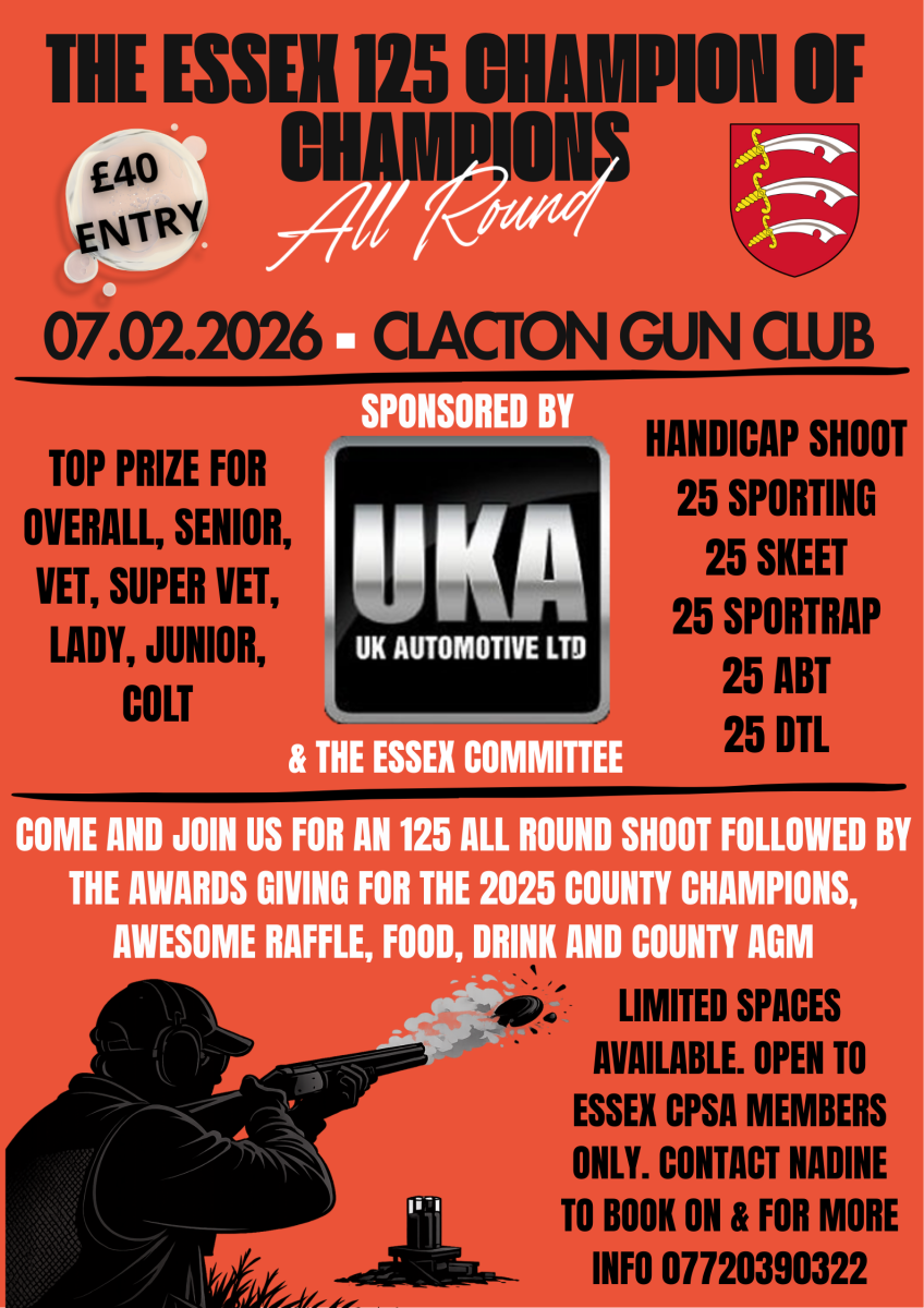 We are booking the White Hart in Witham as usual for the 2021 AGM for sometime in January just in case this can go ahead, however if Covid still doesn't allow this we will be having a committee AGM via Zoom. If any Essex shooters want to raise any concerns or have any topics you need us to discuss or iron out please get in contact with Ian or Nadine as soon as possible. We will update you all on this nearer to the time.