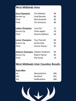 Darren Wood was our top shot on the day with 92, third overall and just two off high gun, with James Sutton just one behind. But it was a great effort from everyone who shot, so thank you to Ian and all of his team for representing Staffordshire and bringing home the medals!