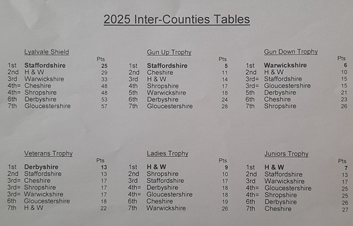 These results helped us to retain the Gun Up Trophy, again for a fourth year on the spin. Elsewhere, congratulations to Warwickshire who took the Gun Down Trophy, to Derbyshire who took the Veterans and to Hereford and Worcester who took the Ladies and Juniors trophies.