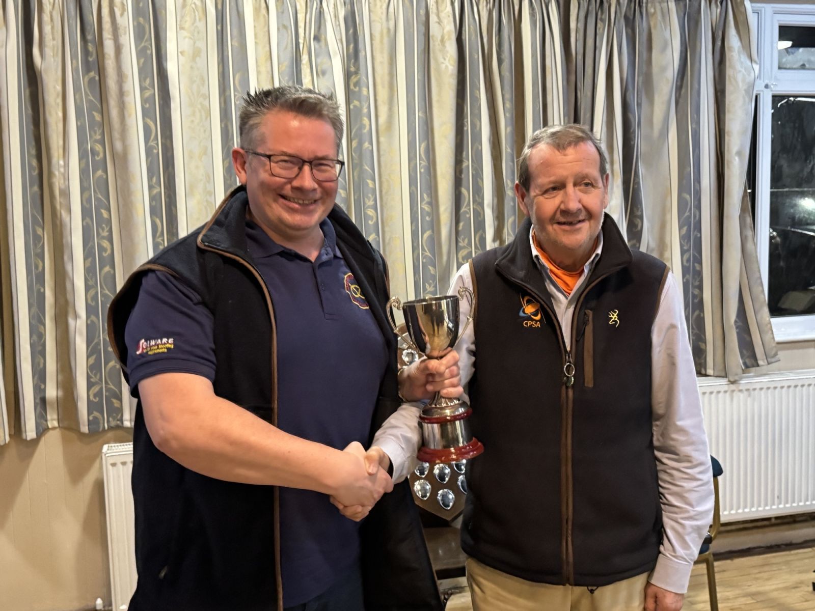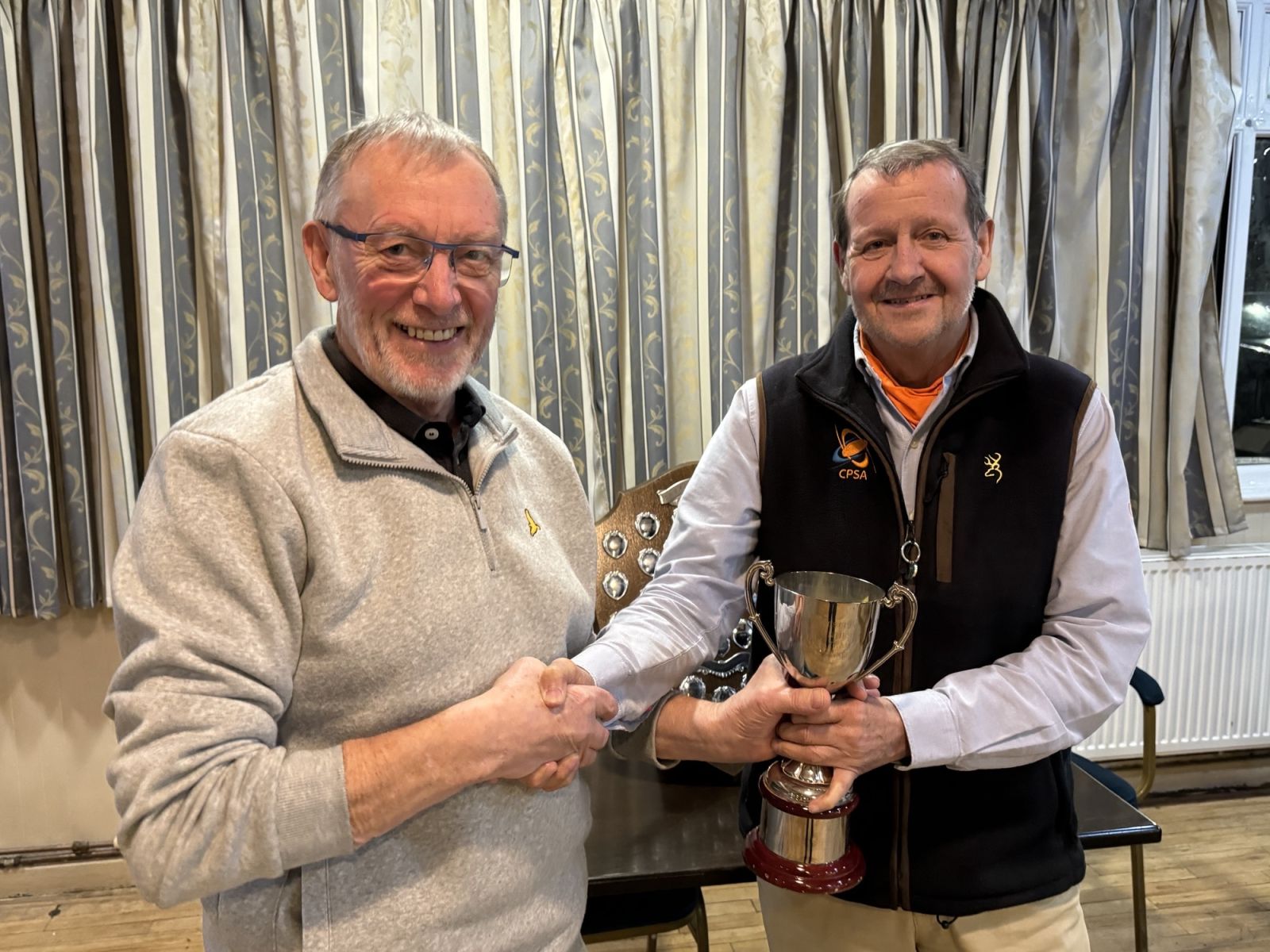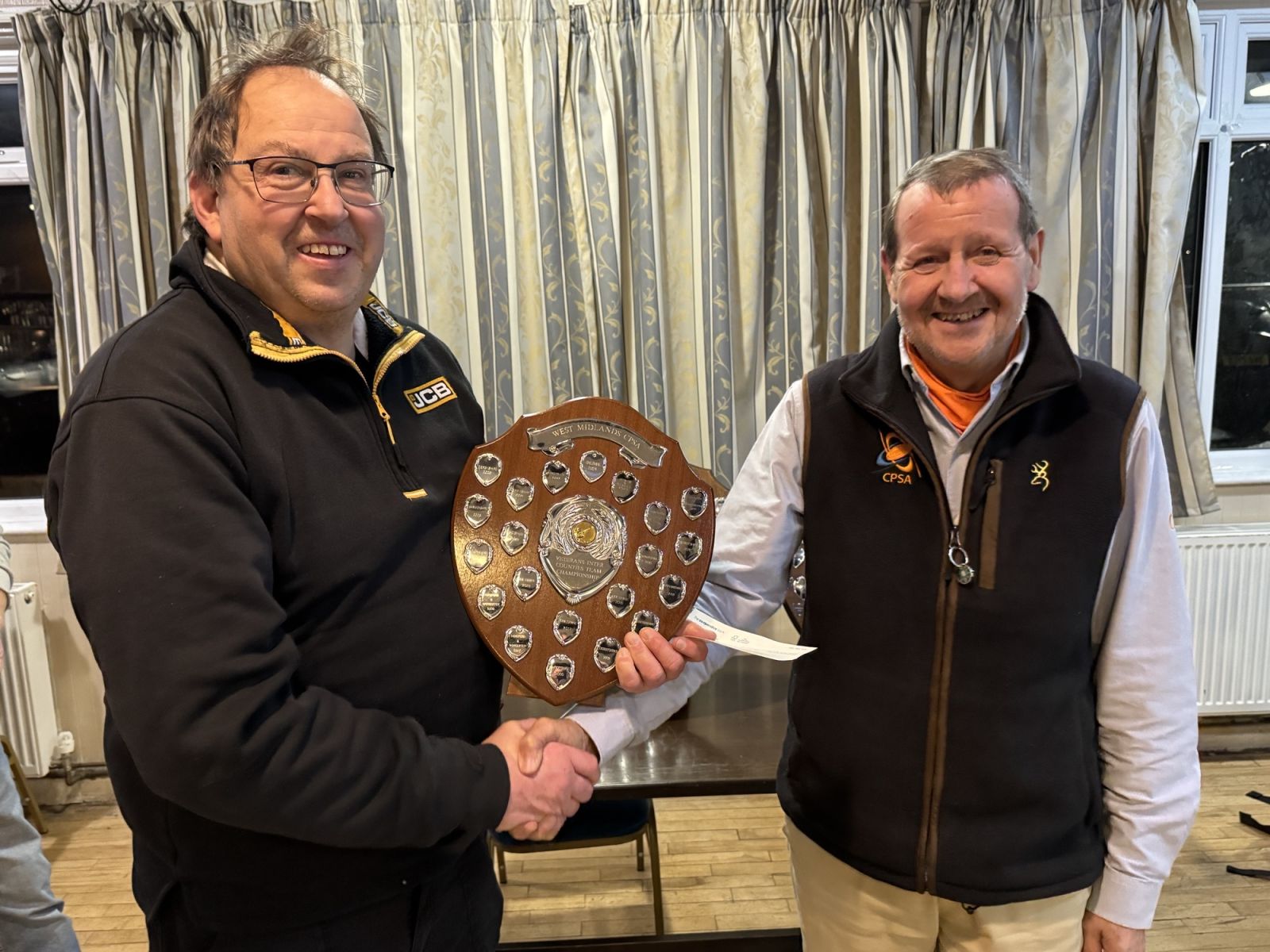 Stuart Thomas from Warwickshire collecting the Gun Down Trophy. Steve Kilner from Staffordshire collecting the Gun Up Trophy