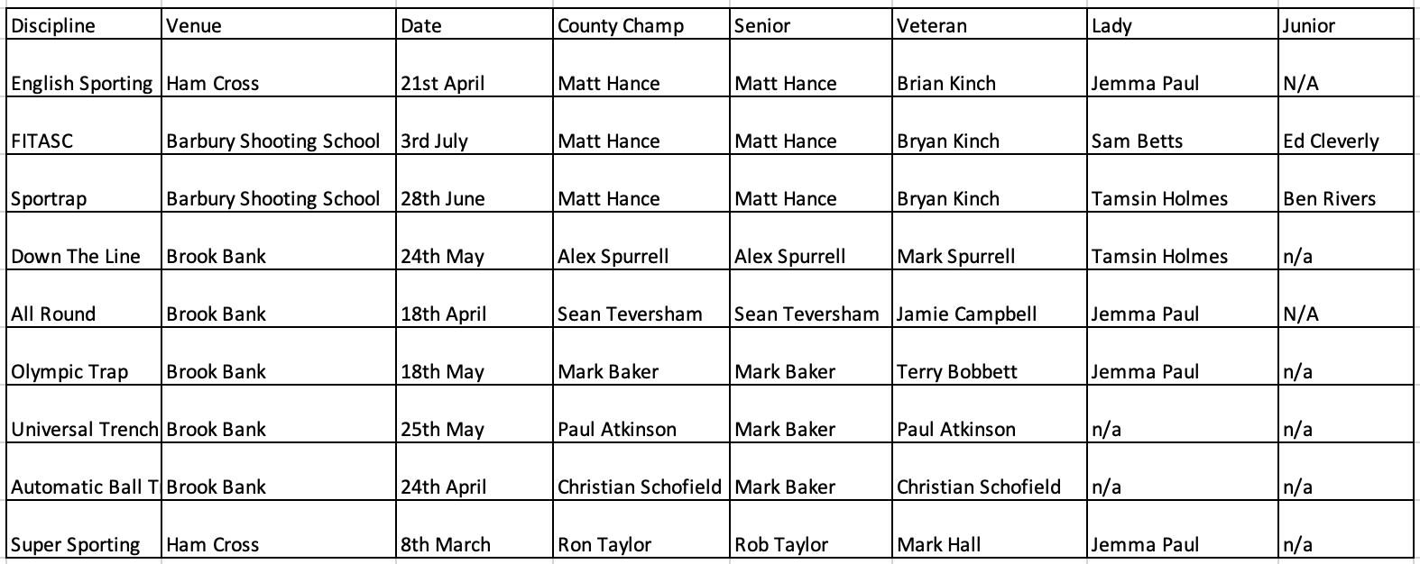 Welcome to the 2025 programme of county shooting! Please see the table below for details of county shoots this year